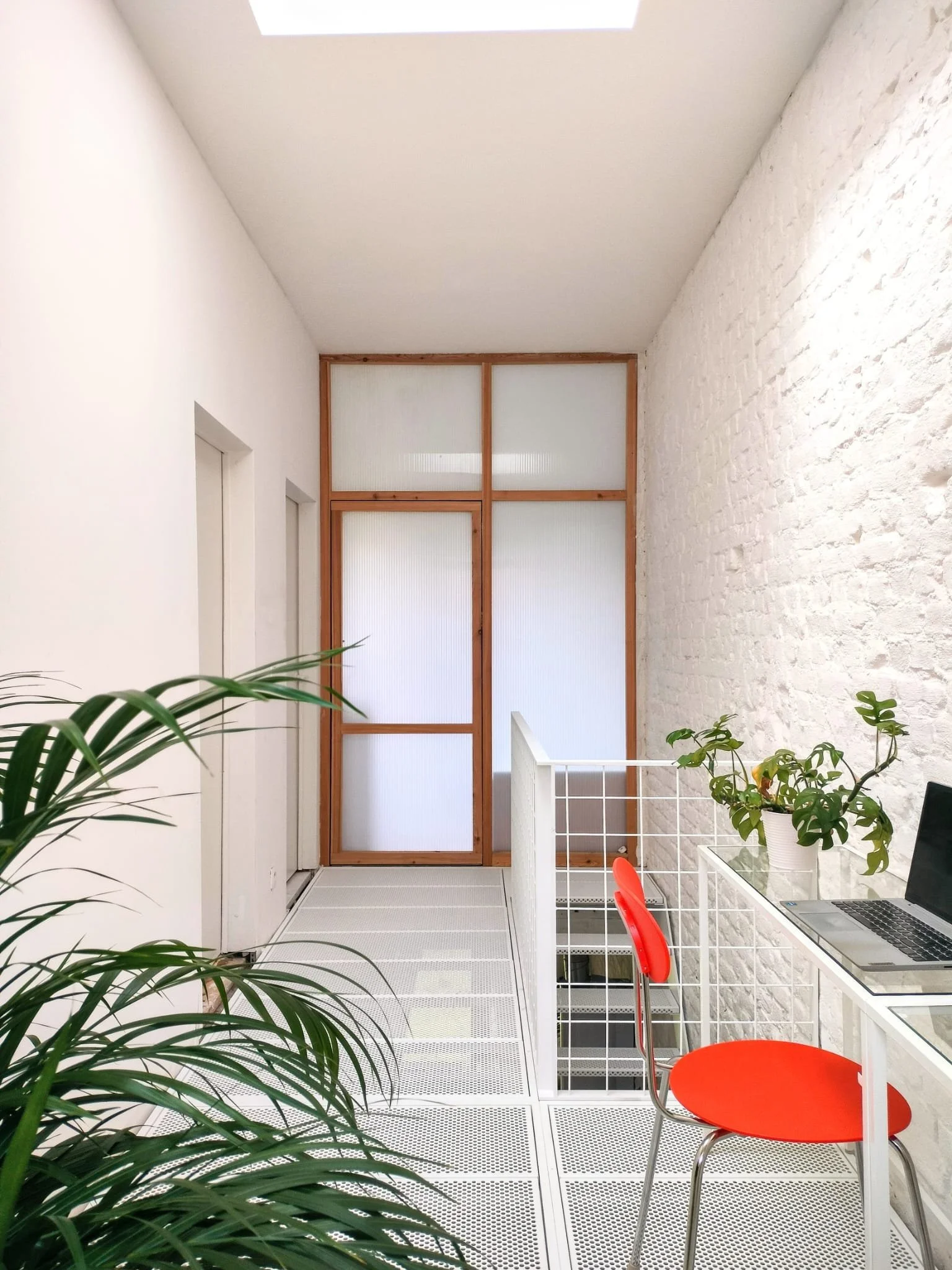 Le chantier Saint-Walburges à Liège intègre un escalier ainsi qu'une passerelle équipés de marches en tôles embouties, garantissant robustesse et durabilité. Le garde-corps est conçu avec des mailles de 10 cm, apportant une sensation de légèreté tout en assurant la sécurité des usagers. Ce choix technique allie fonctionnalité et esthétique, s'insérant harmonieusement dans l'environnement architectural du site.